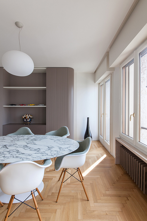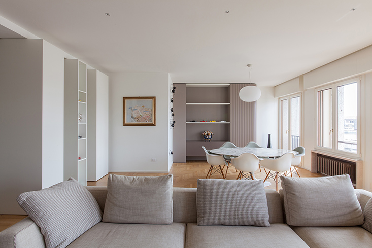 La riqualificazione di appartamenti cittadini degli anni ’60 del ‘900 è tema che gioca tra la necessità di riconvertire uno spazio a nuove necessità e la volontà di confermare forme e materiali che ancora oggi assumono un particolare significato in quanto rappresentano un’epoca ben precisa. Rinnovare o conservare cercando di mantenere inalterate alcune parti dell’abitazione che ancora la rappresentano?