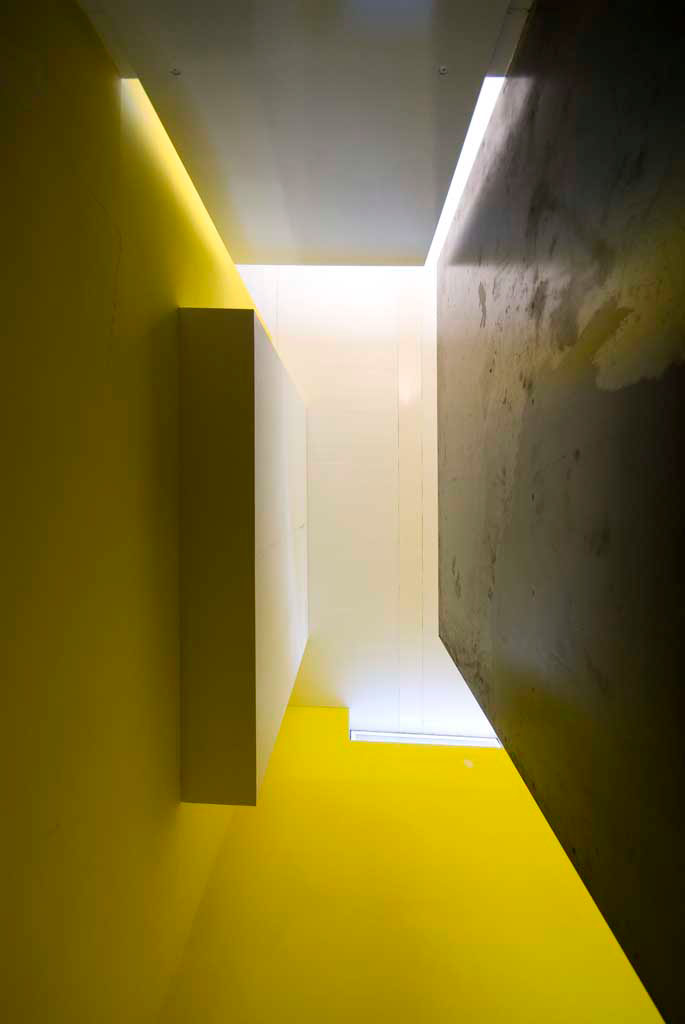 Il tema centrale del limite e del suo superamento viene enfatizzato da incisioni sulle pareti, aperture che mettono in comunicazione i vari spazi. Il percorso si conclude con un ponte in ferro dipinto di bianco che conduce alla terrazza da cui è possibile godere della vista dell’intorno urbano.